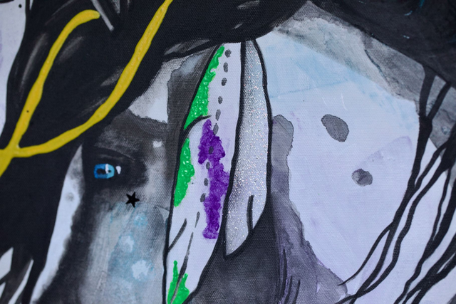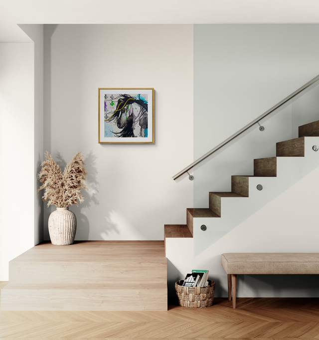 Mon œuvre " Apache " capture l'esprit indompté et la beauté majestueuse du cheval, à travers l'utilisation audacieuse de l'acrylique en style semi-abstrait. J'ai intégré des motifs floraux et des éclats de couleurs vives comme le jaune et le bleu pour symboliser la liberté et la vitalité. Cette peinture incarne la force et l'élégance, apportant une énergie dynamique et inspirante à tout espace de vie.
